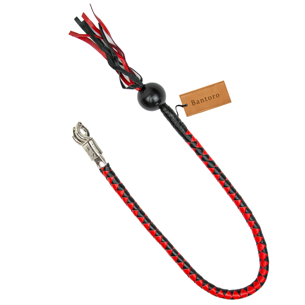 The 42-inch leather whip features a long tail fringe that flows freely in the wind, enhancing your visibility to other motorists. This makes it more than just a custom motorcycle accessory – it’s also a practical motorcycle safety whip that combines function with fashion. The red & black braided leather and fringe tassels create a bold, vintage aesthetic that pairs perfectly with choppers, cruisers, Bobbers, Harleys, and all custom bikes.